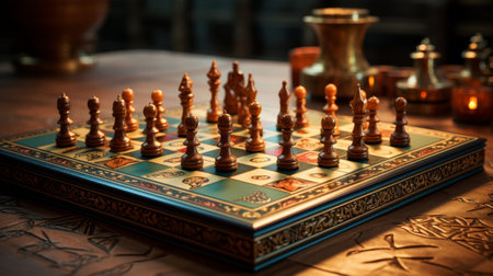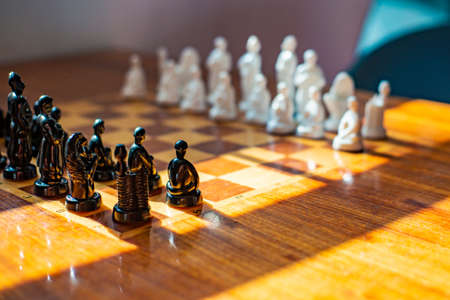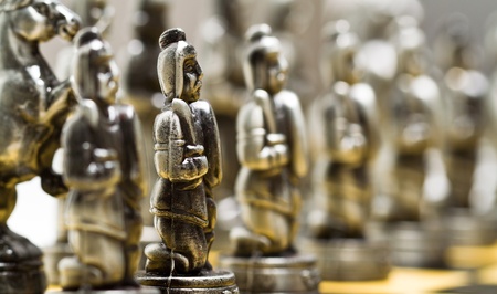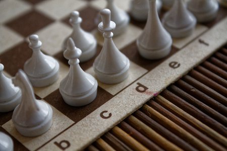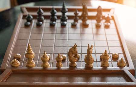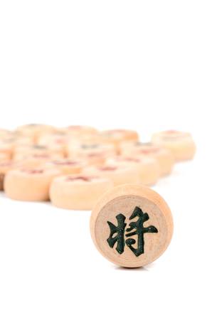 Chinese chess on wooden board, close-up. Traditional Chinese chess.