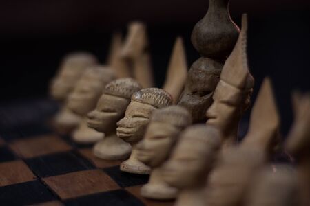 wooden chess endways on the board with wood background. Select focus shallow depth of field.