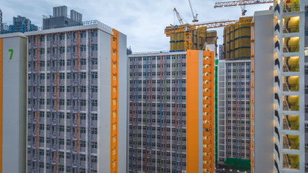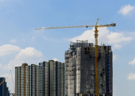 Construction site and high rise residential building in Hong Kong city