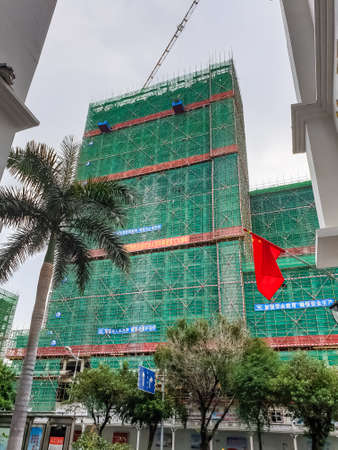 SANYA, HAINAN, CHINA - OCTOBER 14: Cityscape view of construction site of modern residential building at sunny day at October 14, 2019 in Sanya, Hainan, China
