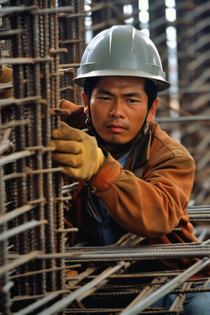 Japanese man working at construction site, generated AI