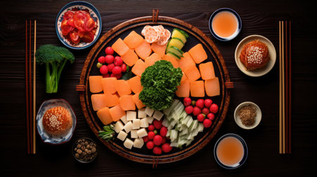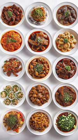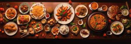 This stunning image showcases a vibrant assortment of colorful dishes spread across a festive table, perfect for cultural celebrations or gourmet dining experiences.