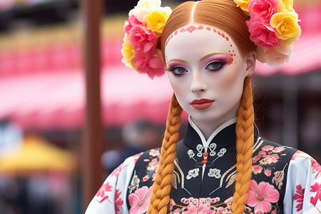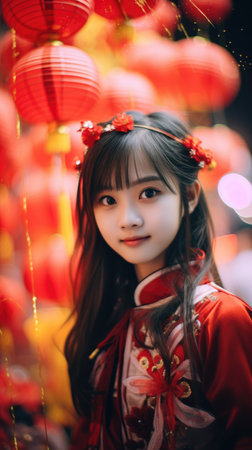 Asian girl in traditional costume for celebration. Lunar new years. Chinese New Year