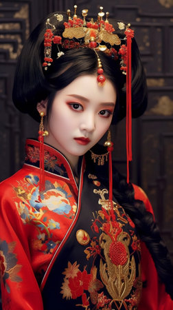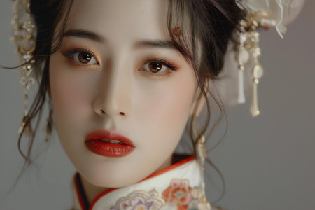 Chinese traditional costume, close-up portrait of a beautiful Chinese woman