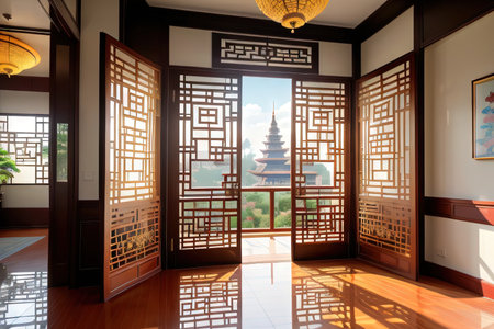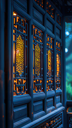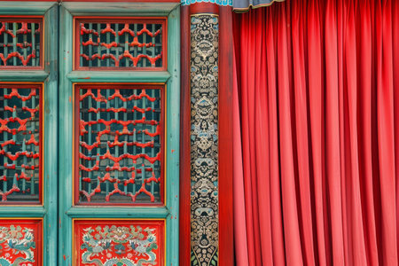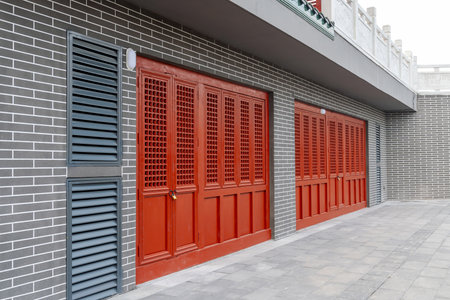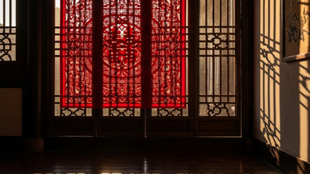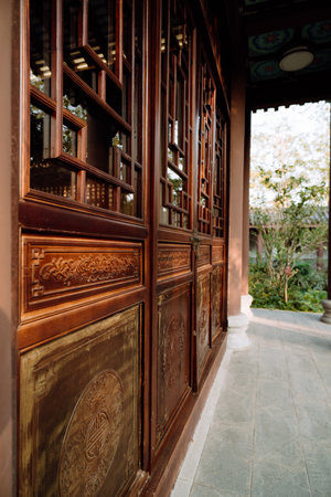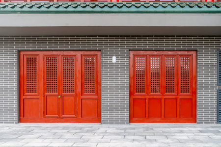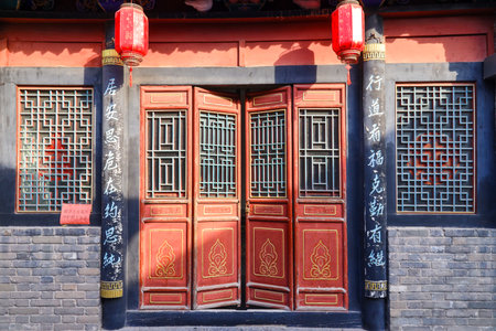 Exploring the exquisite traditional chinese architectural details with intricate wooden carvings and ornamental red doors. Reflecting the cultural heritage and authentic oriental design craftsmanship