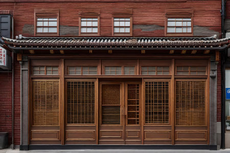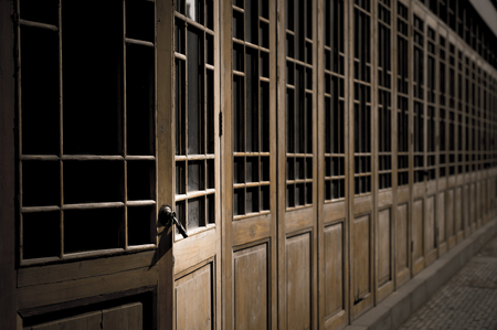 Wooden door and window of old house in Kyoto, Japan.