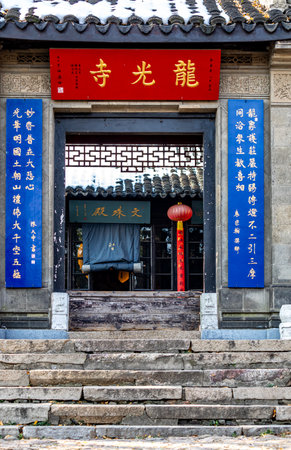 The ancient Chinese architecture of Pingyao Temple in Hangzhou, China.