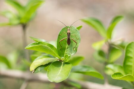 Gonocerus acuteangulatus on leaf in india village garden image Gonocerus acuteangulatus image