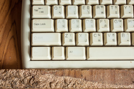Computer keyboard of English and Thai alphabets in sunligh. Business and technology concept