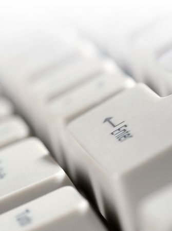 PC Keyboard closeup view. Focus on Enter key. Soft focus. Fade to 100% white on the top of picture.