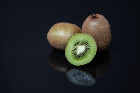 Kiwi fruit on dark background. Green Healthy organic fruit concept.