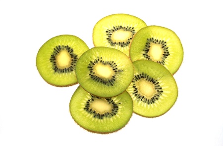 A piece of juicy kiwi fruit on a white background. Isolated kiwi close-up on a white background. Top view.