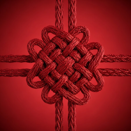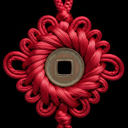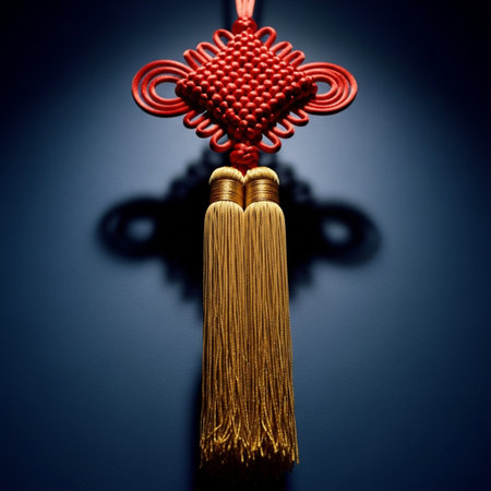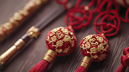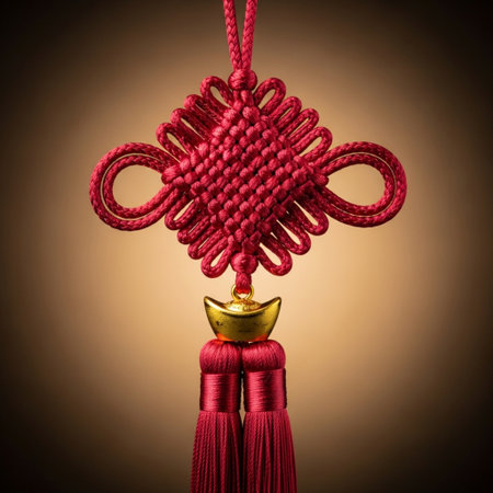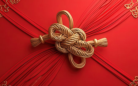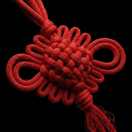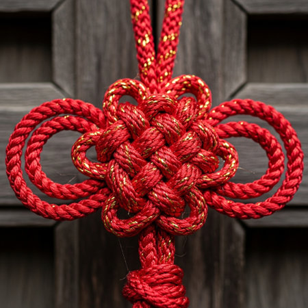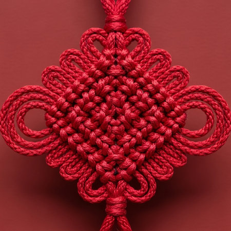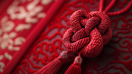 Lunar New Year lucky knot handcraft detailed art represents a ritual object used for seasonal blessings.