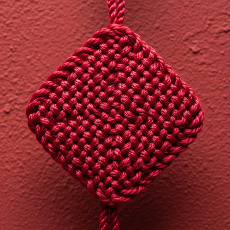 A hero detail shot capturing the intricate texture and craftsmanship of a traditional deep crimson s