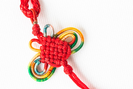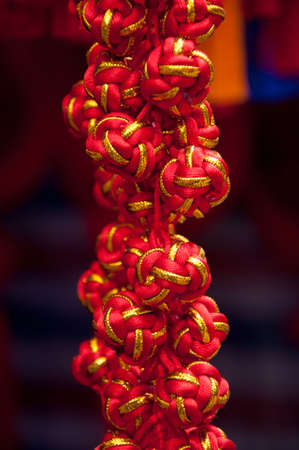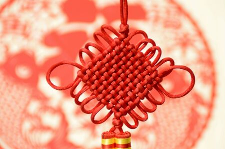 Red rope knot on bokeh background,Chinese New Year concept