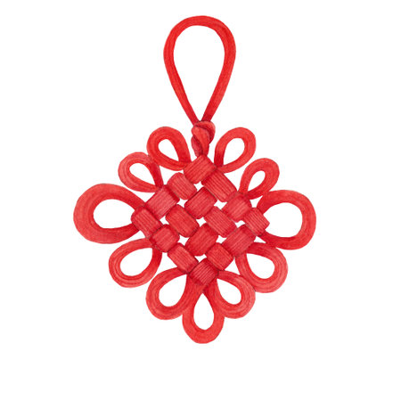 Chinese knot isolated, hand drawn watercolor illustration.