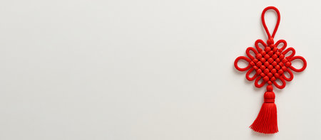 Chinese New Year decor with red knot on white background, AI generated
