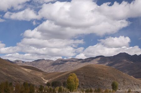 Landscape view of mountains and hills in Tibet