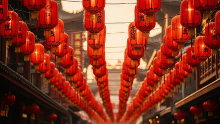 Generative AI Image of New Year in China with Red Lanterns