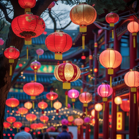 A mesmerizing display of chinese culture as lanterns shine bright during china's new year festivities, symbolizing good fortune