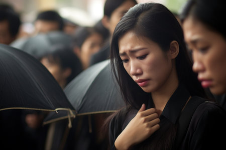 Emotional attendees honor a loved one at a heartfelt funeral ceremony, surrounded by flowers
