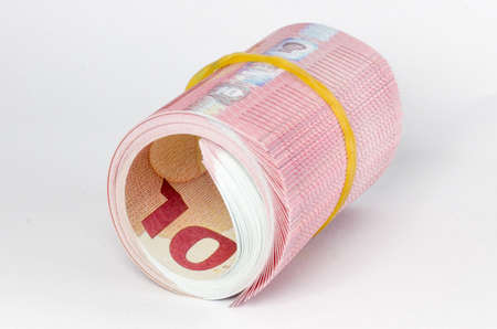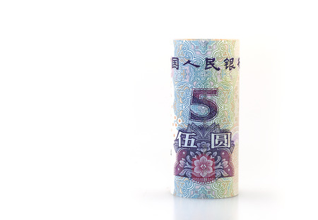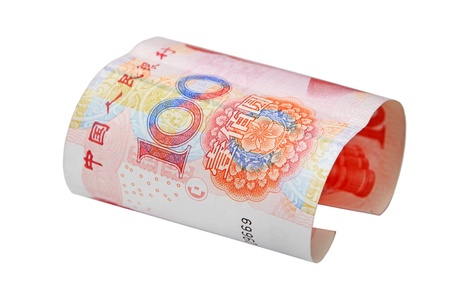 Roll of chinese money closeup on white background