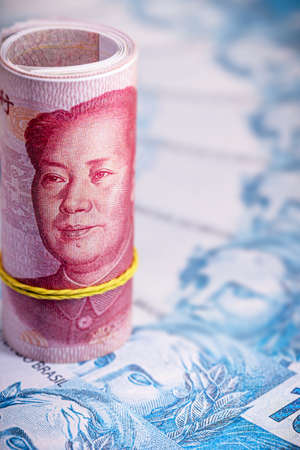 Close up of Chinese banknotes, Chinese Yuan, CNY, RenMinBi, RMB(People's Replublic of China Money) on background. Finance concept.