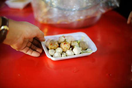 fast food at Asian night market in Vietnam. Traditional Vietnamese street food on the counter in Asia