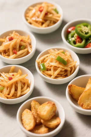 A vibrant assortment of colorful and textured snacks arranged beautifully. Perfect for showcasing variety and creativity in snack presentations.