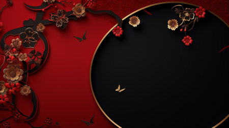 Elegant oriental red and gold template with snake, floral design, minimalist asian style greeting card. Generative AI