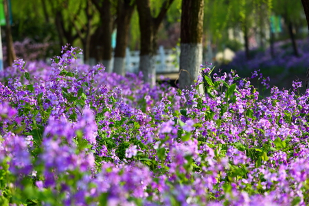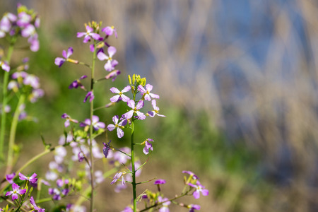 closeup of purple color Raphanus sativus for. raphnistroides MAK. flowers in a field in Gapado Island of Jeju Island, Korea.