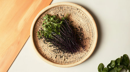 Discover the beauty of fresh microgreens featuring vibrant green leaves and intricate roots, perfect for food photography and gardening projects.