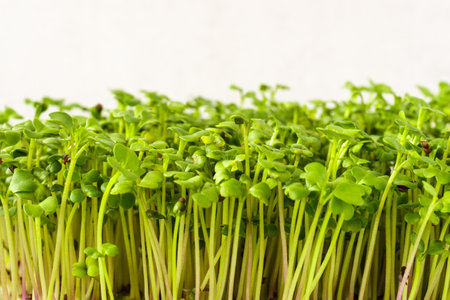 Fresh microgreens. growing cressalate on a white background. Healthy eating