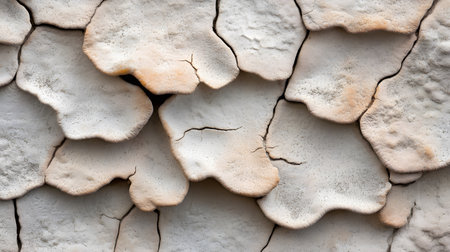 An intricate pattern of dry, cracked organic scales creates a unique natural texture. The weathered surface offers an abstract and earthy background.