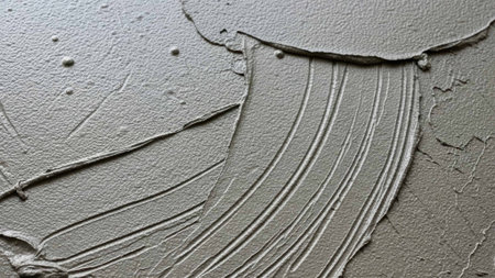 Abstract background showcasing the rough, granular surface of freshly applied cement plaster with distinct parallel lines from a finishing tool