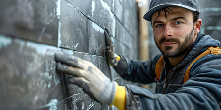 Masterful artisan laying ceramic tiles depicting construction and architecture concept. Concept Artisan, Ceramic Tiles, Construction, Architecture, Masterful Craftsmanship