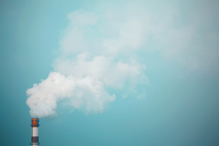 Chimney smoke with blue sky. The global