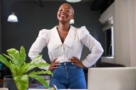 Stock photo of beautiful black woman smiling and posing in studio shot.