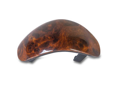 Wooden trim for handle of shifting automatic gears of the car. Decorative details on a black background.
