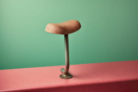 bar stool in a simple and clean brutalist environment captured in an editorial style photograph. shot with a mamiya rz67, the image showcases the zoomed-in details of the stool. ai generated