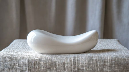 A stunning white ceramic sculpture rests elegantly on a textured fabric surface. Its smooth, curvy form and minimalist design enhance any decor style, creating a serene and sophisticated atmosphere.