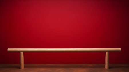 gymnastics beam on a solid color background, shot with canon eos r5. the image showcases a front full pose with no people or distracting elements. the bright and clear photo features a flat composition with no logos or hangers, solely focusing on the beam. authentic and minimalist photography capturing the essence of the gymnastics apparatus. ai generated