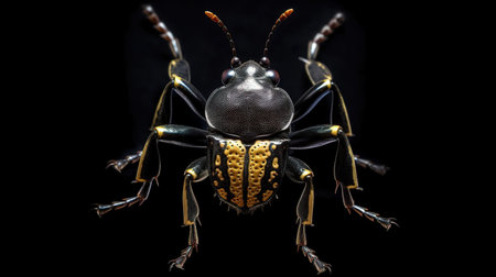 Black beetle on a black background. 3d illustration. Isolate.
