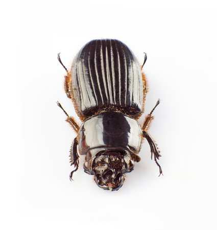 Macro shot of forest dung beetle (Anoplotrupes stercorosus) on white background surface