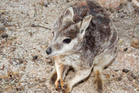 Portrait of a pygmy marsupial sitting on the ground