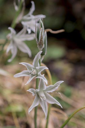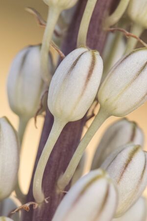 Urbinea maritima plant with beautiful white flowers with yellow or green stamens that bloom in late summer illuminated with flash