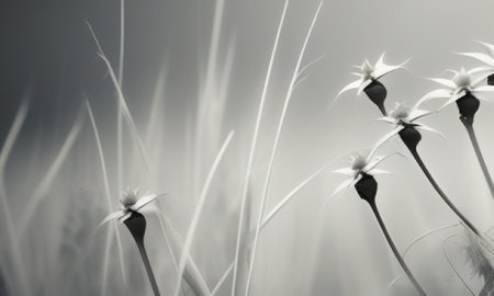 Dandelion flowers on a white background in monochrome style