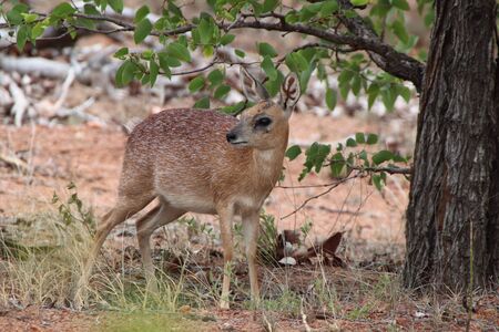 Little royal antelope neotragus pygmaeus in the natural wild life. Baby deer.