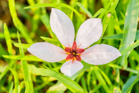 Close up of white flowers in the forest. Selective focus.