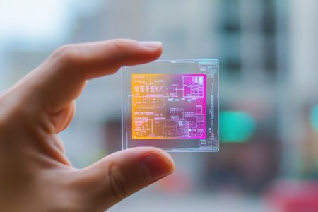A hand gently holds a microprocessor, highlighting technology's intricate design.